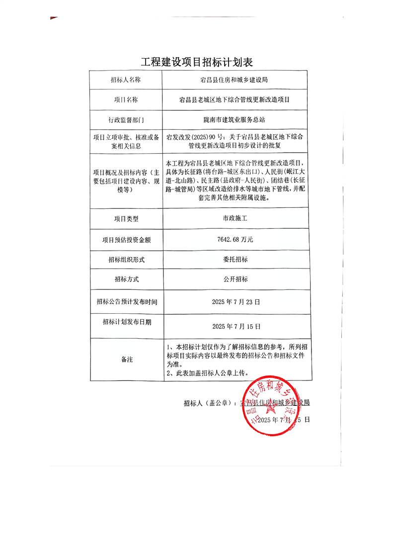 宕昌縣老城區(qū)地下綜合管線(xiàn)更新改造項(xiàng)目