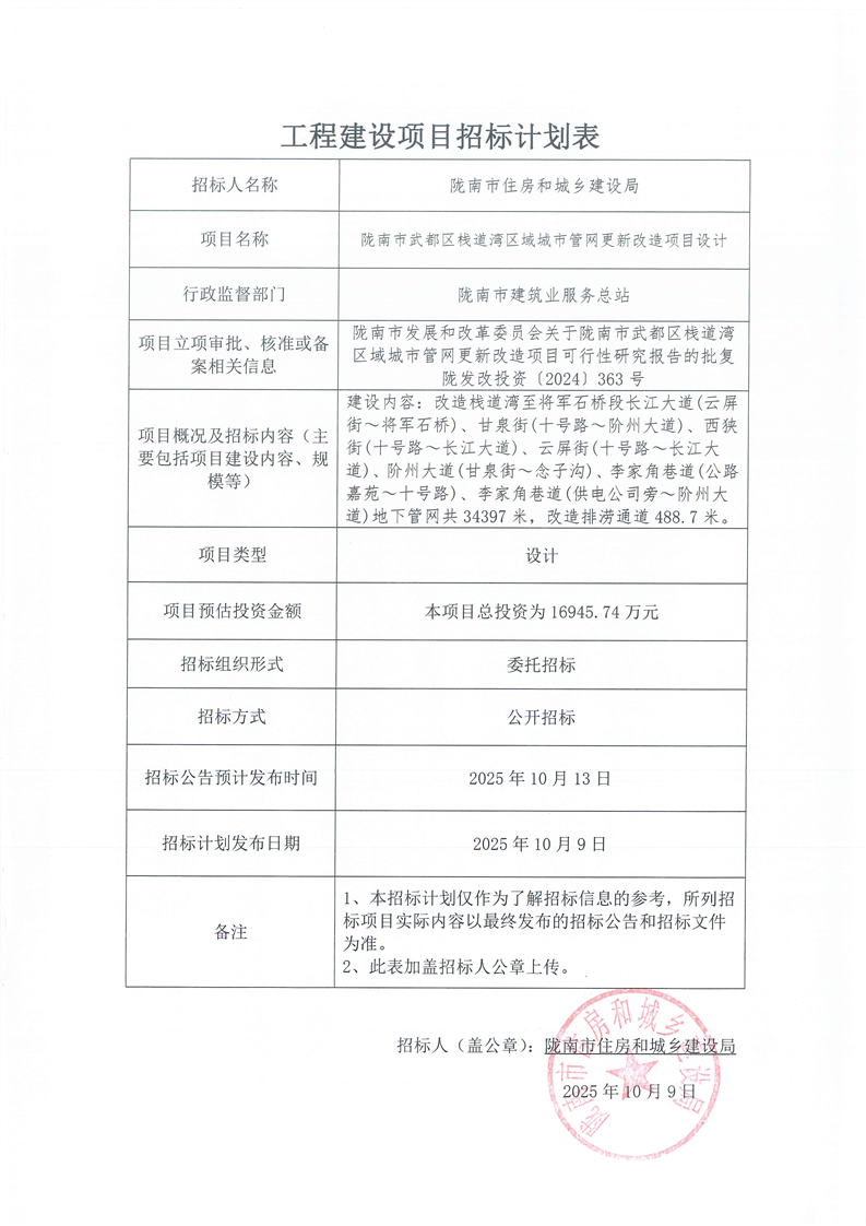 隴南市武都區(qū)棧道灣區(qū)域城市管網(wǎng)更新改造項目設計