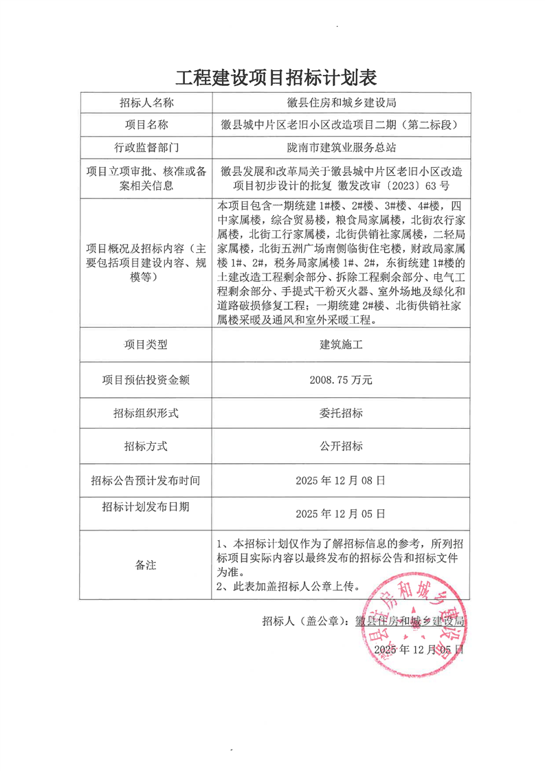 附件:工程建設(shè)項目招標(biāo)計劃表徽縣城中片區(qū)老舊小區(qū)改造項目二期(第二標(biāo)段).pdf