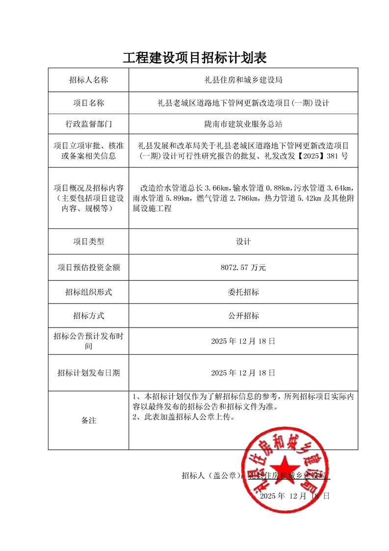 禮縣老城區(qū)道路地下管網(wǎng)更新改造項目(一期)設計