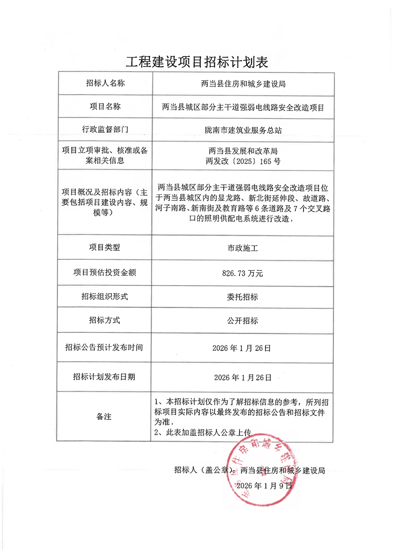兩當(dāng)縣城區(qū)部分主干道強(qiáng)弱電線路安全改造項(xiàng)目