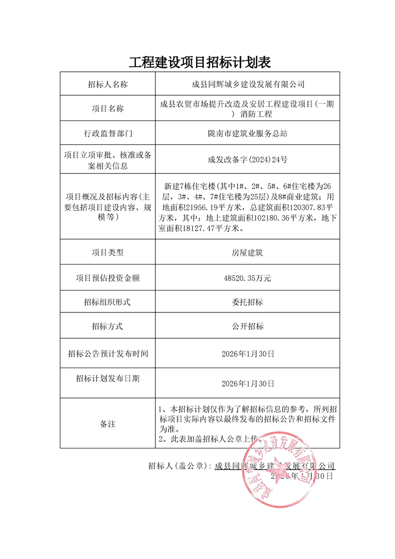 成縣農(nóng)貿(mào)市場(chǎng)提升改造及安居工程建設(shè)項(xiàng)目(一期) 消防工程