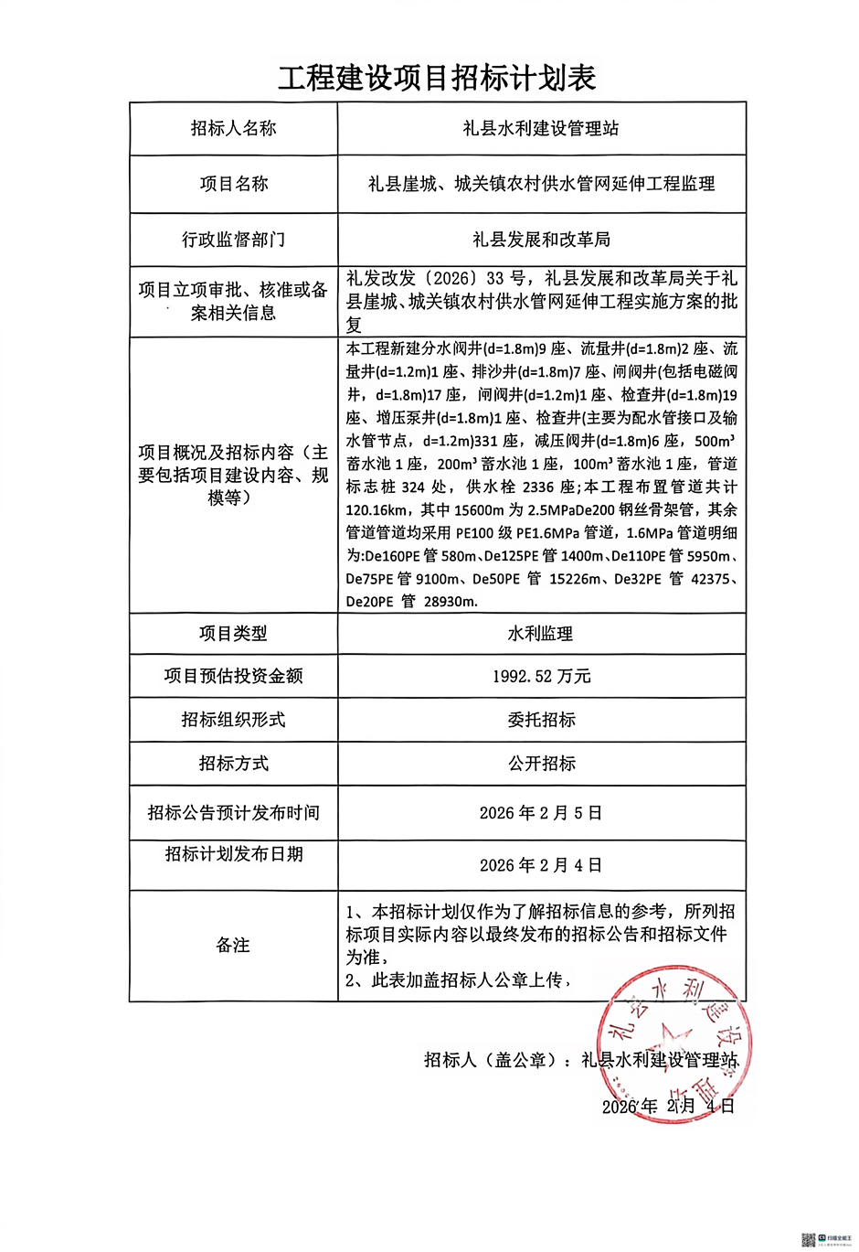 禮縣崖城、城關鎮(zhèn)農村供水管網(wǎng)延伸工程監(jiān)理