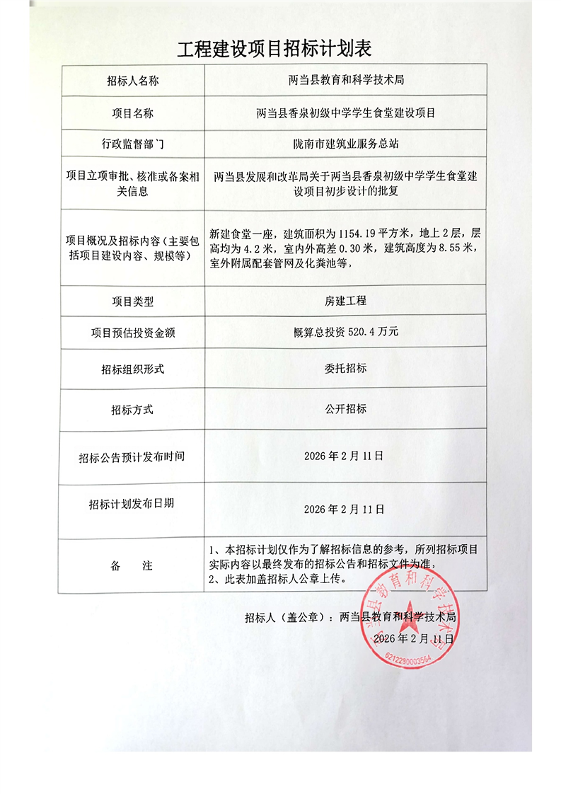 兩當(dāng)縣香泉初級中學(xué)學(xué)生食堂建設(shè)項(xiàng)目