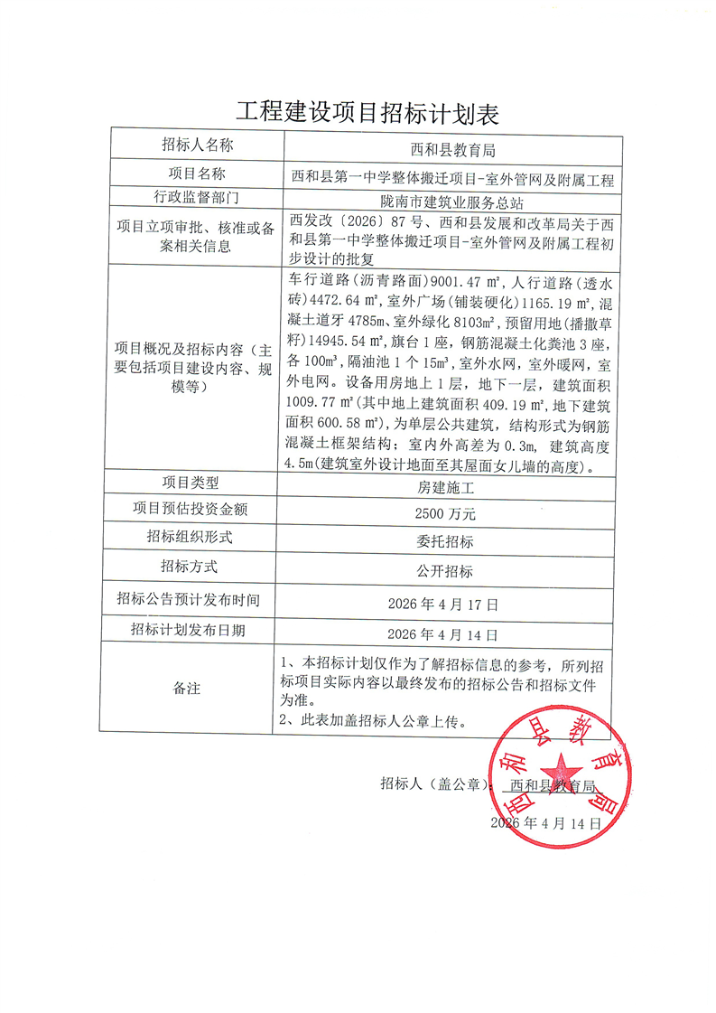 西和縣第一中學整體搬遷項目-室外管網及附屬工程