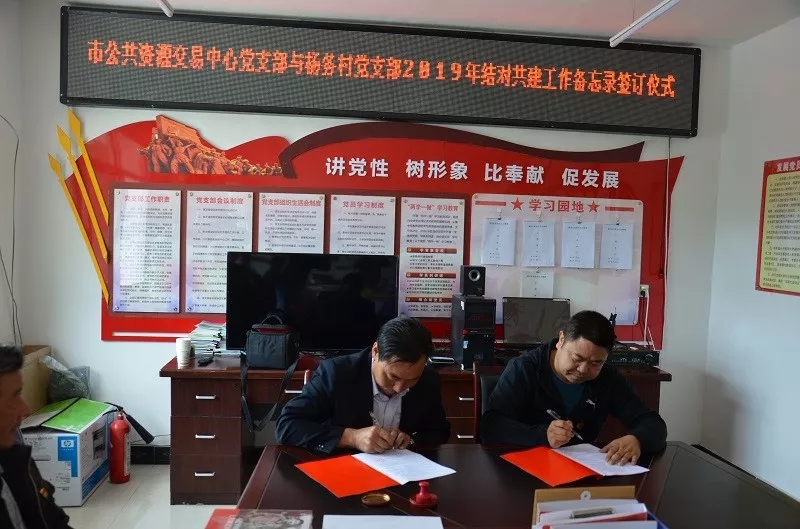 根據(jù)《中共隴南市委組織部關于扎實做好幫扶單位黨組織與貧困村黨組織結對攻堅工作的通知》要求,市公共資源交易中心黨支部與武都區(qū)黃坪鎮(zhèn)楊務村黨支部在4月啟動開展結對共建活動基礎上,組織召開雙方黨支部結對共建工作聯(lián)席會,進一步探討和完善結對共建方案,簽訂了《隴南市公共資源交易中心黨支部與武都區(qū)黃坪鎮(zhèn)楊務村黨支部2019年結對共建工作備忘錄》。