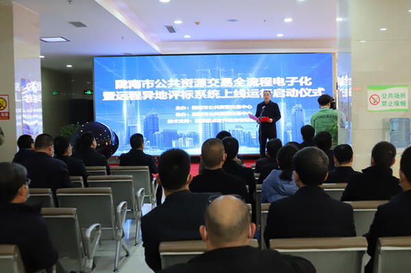 啟動(dòng)儀式上,中心黨組書記、主任張巍做了致辭,并向參會(huì)嘉賓播放了市公共資源交易中心工作匯報(bào)專題視頻。隨后大家通過大屏幕觀看了隴南-定西兩地評委實(shí)時(shí)遠(yuǎn)程異地評標(biāo)情景畫面;兩地專家準(zhǔn)備就緒后,與會(huì)領(lǐng)導(dǎo)發(fā)送系統(tǒng)啟動(dòng)指令,共同見證了隴南市公共資源交易全流程電子化暨遠(yuǎn)程異地評標(biāo)系統(tǒng)上線運(yùn)行。