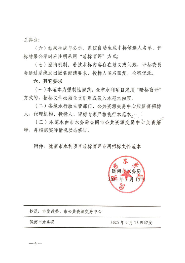 附件:附件:隴南市水利項目盲標暗評專用招標文件范本(1).pdf 附件:水利類-材料采購模板.docx 附件:水利類-監(jiān)理模板.docx 附件:水利類-設計模板.docx 附件:水利類-施工模板.docx